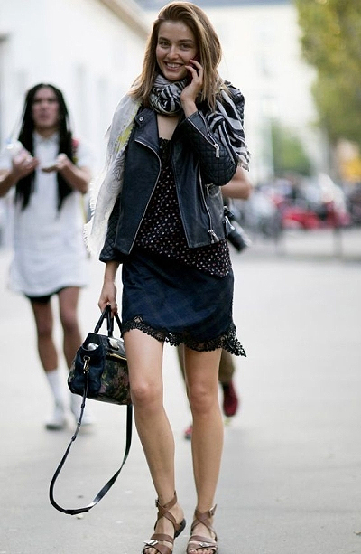 Ki mondta, hogy a kombinéruhát nem lehet bőrdzsekivel párosítani? Tökéletes kombináció, bár érdemes egy topot húzni a ruha és a dzseki közé, hogy az utóbbinak jobb legyen a tartása. Hogy szandállal, bokacsizmával, vagy félcipővel egészíted ki, az már rajtad és a többi kiegészítőn múlik. Több hosszú nyaklánc egymáson, vagy egy mintás kendő is illik a szetthez.