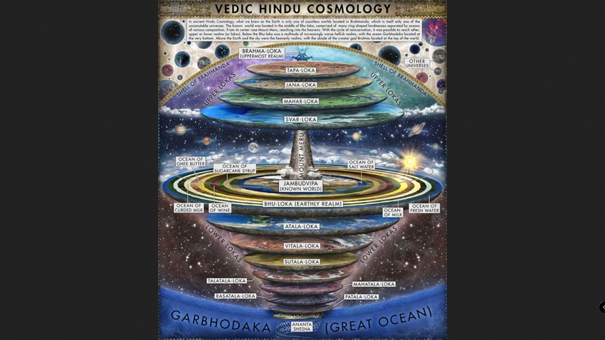 A védák szerint 3 -féle anyagi világ van, szférák, más néven lókák. A 3 bolygórendszer lakói aszerint rendeződnek, hogy mely kötőerő hat leginkább az élőlényre. A jóság, a szenvedély vagy a tudatlanság. Az idő, mint fogalom minden helyen más-más, így ami itt a Földön 1 év, máshol 10 vagy 30, akár 100 év is lehet, de kevesebb is mint 5 hónap.