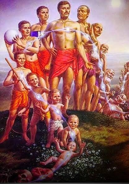 Elgondolkodtató, hogy a tanítás kb. 8.400.000 -féle újjászületésről beszél az anyagi világban. Ez nem csupán a 3.dimenziós megtestesülésekről szól, hanem a finom anyagi testekről is, melyek láthatatlanok a szemnek; őket nevezzük entitásoknak.
